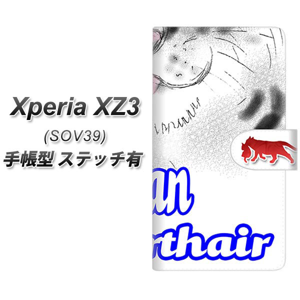 au Xperia XZ3 SOV39 手帳型 スマホケース カバー 【ステッチタイプ】【YA801 アメショー】