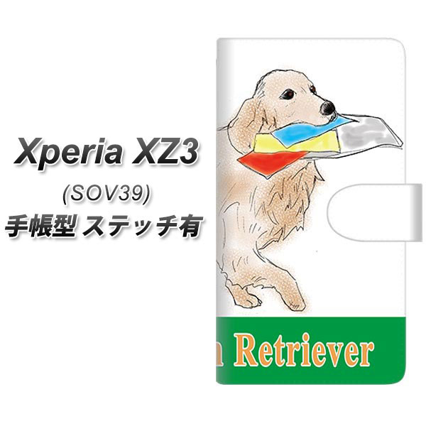 au Xperia XZ3 SOV39 手帳型 スマホケース カバー 【ステッチタイプ】【YA804 レトリバー】