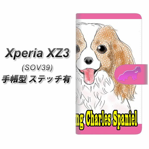 au Xperia XZ3 SOV39 手帳型 スマホケース カバー 【ステッチタイプ】【YD885 キャバリアキングチャールズスパニエル01】